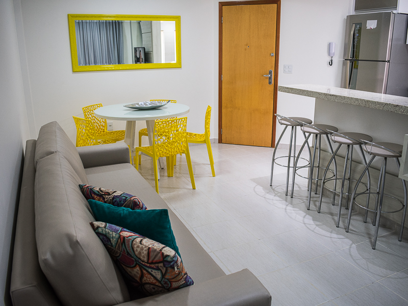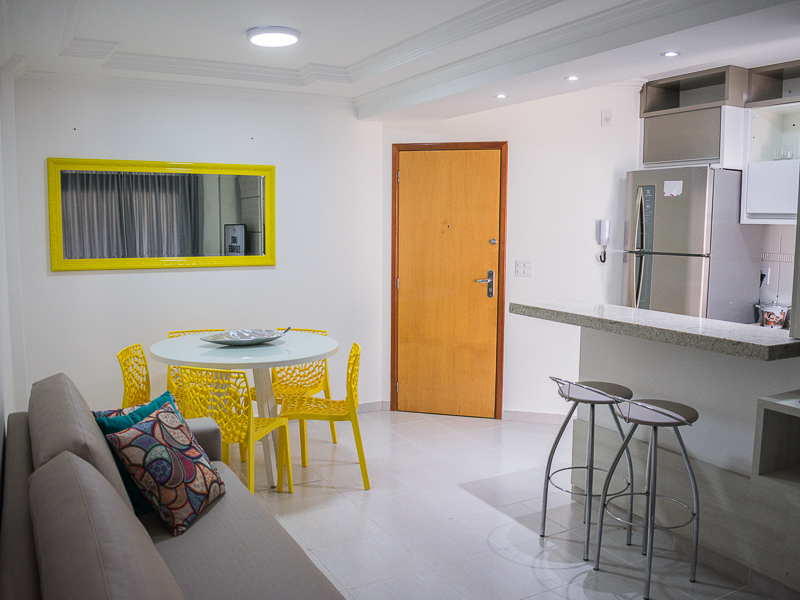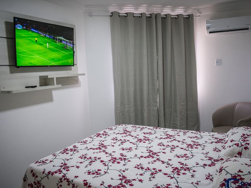 Apartamento com 02 quartos com ar condicionado split, sendo 01 suite, sala, cozinha e varanda.